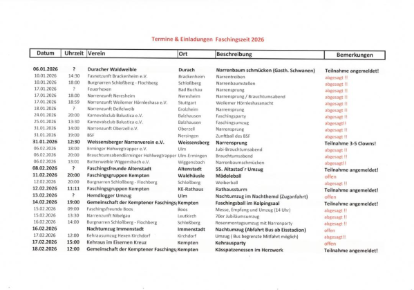 | 16.02.26 | ? | Rosenmontag (muss noch organisiert werden) | Rathausplatz |